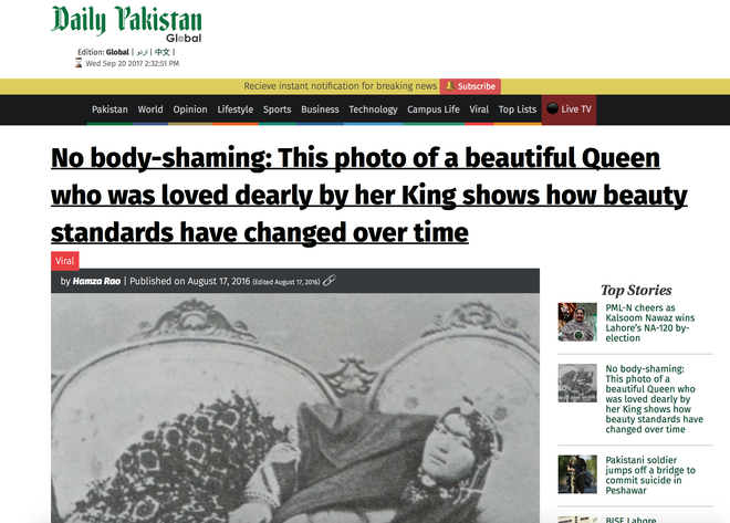 Dĩ nhiên, mọi sự so sánh khác thời đại đều là khập khiễng. Một bài viết trên NYTimes có nêu rằng với Nasser al-Din Shah, tuyệt sắc giai nhân phải đến từ vẻ đẹp đầy đặn, căng tràn nhựa sống, kèm theo cặp lông mày siêu đậm và một hàng ria lấp ló. Đó là biểu trưng của một phụ nữ trong hoàng tộc - đủ giàu có để luôn no đủ, không bao giờ bị đói, và không phải lao động nặng nhọc.