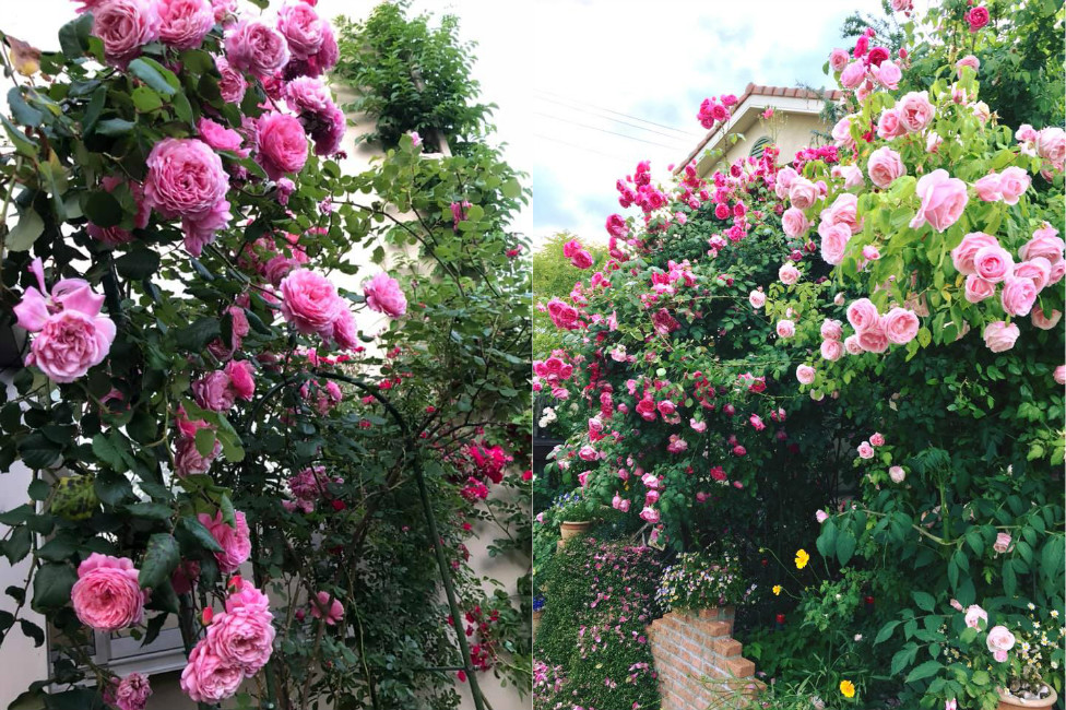 Hàng nghìn đóa hồng vươn mình từ trong sân nhà ra ngoài đường, phủ kín hàng rào tạo vẻ đẹp thơ mộng, mang đến vẻ đẹp ngọt ngào và lãng mạn cho ngôi nhà của anh Đỗ Văn Dương ở Nhật Bản.