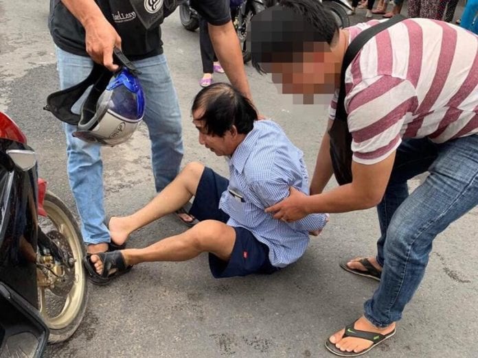 Cảnh sát bắt ông Vương Quốc Thái. (Hình: Pháp Luật TP.HCM)