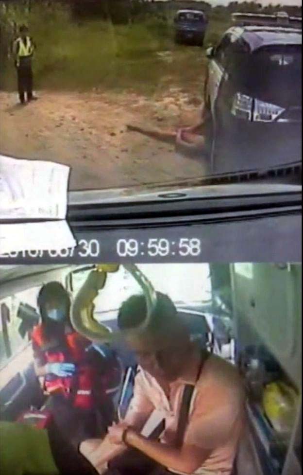 Hình lấy từ video của cảnh sát cho thấy Nguyễn Quốc Phi đang bò đến xe cảnh sát và tìm cách mở cửa.