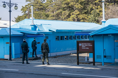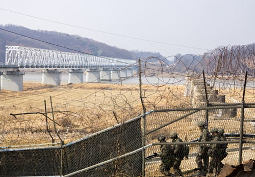 Khu vực binh lính hai miền đứng gác đối diện nhau ở biên giới Hàn - Triều. Ảnh: Osyter.