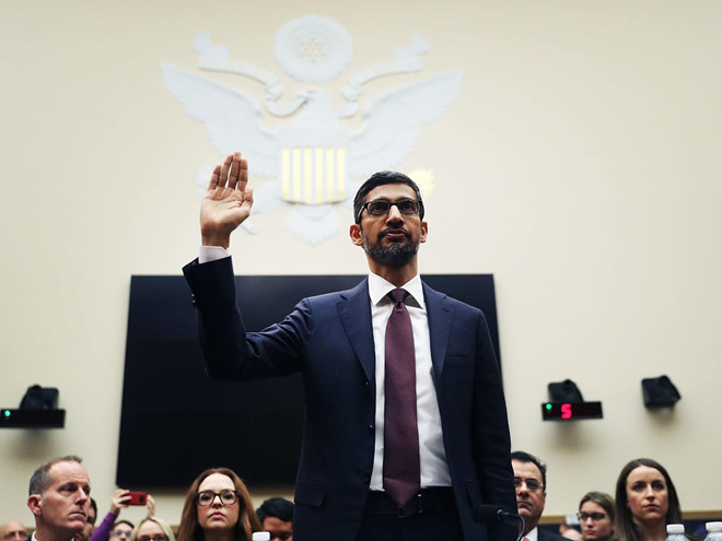 CEO của Google, Sundar Pichai trong phiên điều trần ngày 11/12/2018 trước quốc hội Mỹ. Ảnh: Bloomberg.