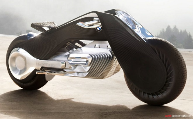 BMW đã quyết định đi trên một con đường đầy dũng cảm, họ muốn sản xuất xe máy của tương lai. Cỗ máy với tên gọi Vision Next 100 chứa nhiều công nghệ và các yếu tố thiết kế bạn sẽ không tìm thấy trên bất kỳ chiếc xe nào khác. Chiếc xe này được trang bị hệ thống tự cân bằng, tránh được những nguy hiểm sắp xảy ra. Bên cạnh đó, công nghệ này giúp cho BMW Motorrad Vision Next 100 concept giữ tư thế cân bằng cả lúc chuyển động lẫn đứng yên và ngăn đổ.