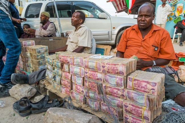 Somalia là 1 quốc gia có nhiều điều kỳ lạ. Tiền ở quốc gia này được chở bằng xe cút kít, mua bán tiền như mua rau. Không có nơi nào trên thế giới người ta cảm thấy bản thân thành "triệu phú" như ở đây vì ôm được quá nhiều cọc tiền sau khi đổi.