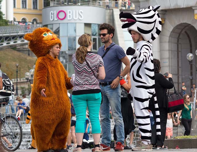 Những con rối kích thước to như người thật này thường mặc trang phục của các nhân vật hoạt hình nổi tiếng. Chúng thường tiếp cận tới những gia đình có trẻ em và yêu cầu họ chụp ảnh chung, sau đó chúng sẽ bắt đầu xin tiền cho mỗi bức ảnh được chụp. Những kẻ lừa đảo thường hành xử rất táo bạo và hung hăng, một số du khách sẽ cảm thấy bối rối và đồng ý với điều kiện của họ.