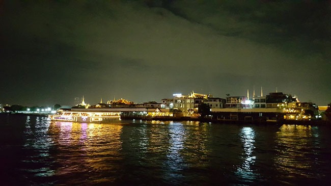 Buổi tối, du khách có thể lên những chiếc thuyền lớn với không gian mở, lướt trên sông Chao Phraya với tốc độ khoảng 40 km/h và thưởng ngoạn gió mát, ánh đèn màu loáng trên mặt nước, các khu mua sắm sầm uất dọc hai bên sông, và những công trình kiến trúc đậm chất Thái Lan