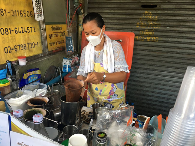 Nếu bạn nhìn thấy cách người Bangkok làm món trà sữa của họ thì có thể bạn sẽ nghĩ nó hơi kỳ quặc, vì nhìn nó hơi giống với cách thổ dân da đỏ làm những gì đó để bôi lên mặt. Nhưng sự thực thì không phải như vậy đâu nha!!!