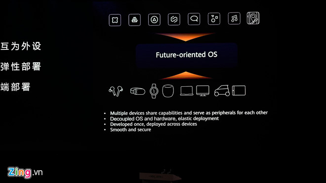 HarmonyOS đóng vai trò kết nối các thiết bị, giúp đồng bộ hệ sinh thái của Huawei. Hệ điều hành này sẽ phát hành vào cuối năm nay.
