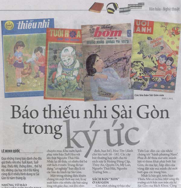 Qua những trang báo dành cho độc giả thiếu nhi như Tuổi Xanh, Tuổi Hoa, Thiếu Nhi, Thằng Bờm... thế hệ tôi, những cậu học trò ở Đà Nẵng cũng đã ít nhiều hình dung ra Sài Gòn từ năm tháng ấy.