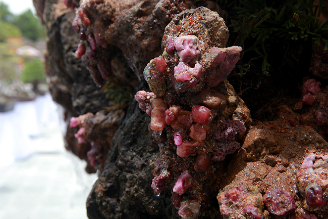 Chỗ gắn ít, chỗ gắn nhiều đá ruby để tạo nên những mỏm đá giống như thật