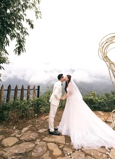 Người đẹp đặt riêng trang phục cưới và thuê êkíp Hàn Quốc ghi lại hình ảnh vợ chồng cô. Họ còn dành thời gian nghỉ dưỡng, leo đỉnh Fansipan ngắm cảnh.