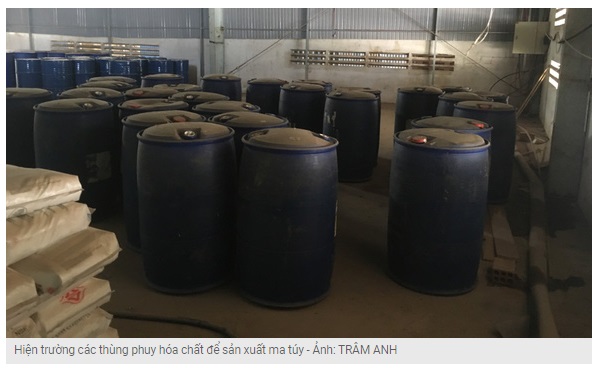 Theo báo chí nhà nước, trong vụ truy kích một kho hàng sản xuất ma tuý ở phường Bùi Thị Xuân, thành phố Quy Nhơn vào đầu tháng 8, công an Việt Nam đã bắt giữ 4 công dân Trung Cộng là Huang Zengfang, Lin Cunzhou, Zhou Meilianvà Zhou Liuging. Công an thu giữ hàng tấn hoá chất và tiền chất cùng nhiều dụng cụ để sản xuất ma tuý đá Methamphetamine.