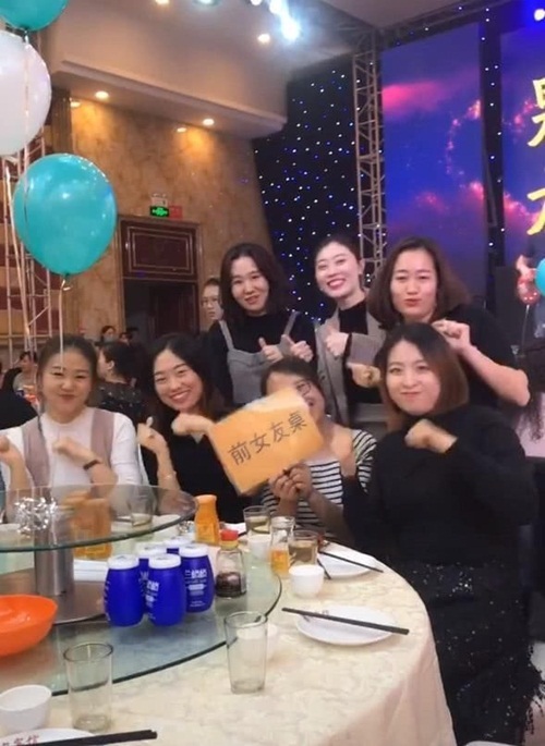 Điều khiến người khác chú ý là cả 7 cô bạn gái cũ này không hề khó chịu hay ghen tị với cô dâu. Họ cùng nói chuyện, ăn uống hòa hợp với nhau, cùng nâng ly chúc phúc cho cô dâu, chú rể. Thậm chí, họ còn sẵn sàng chụp ảnh với tấm biển: "Bàn bạn gái cũ".
