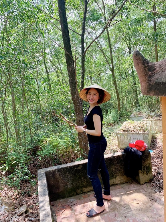 Mới đây, hot girl "Nóng cùng World cup" tiết lộ ảnh về quê ngoại trong trang phục giản dị nhưng cho thấy tâm trạng của cô rất hứng khởi và vui vẻ.