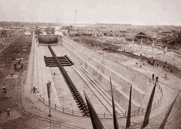 Ụ tàu nổi được mang từ Pháp sang Sài Gòn để thành lập xưởng Ba Son (Ảnh: LIFE)