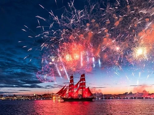 St Peterburg là thành phố nổi tiếng với hiện tượng đêm trắng, diễn ra từ cuối tháng 5 đến giữa tháng 7. Vào thời điểm này, mặt trời không bao giờ lặn hoàn toàn và bầu trời vẫn sáng suốt đêm. Khi "thành phố không ngủ", các lễ hội cũng được tổ chức. Trong đó phải kể đến lễ hội ngôi sao, liên hoan nhạc Jazz. Độc đáo nhất là lễ hội cánh buồm đỏ thắm, thường diễn ra vào cuối tháng 6 với những màn trình diễn pháo hoa, biểu diễn du thuyền và trình diễn ánh sáng.