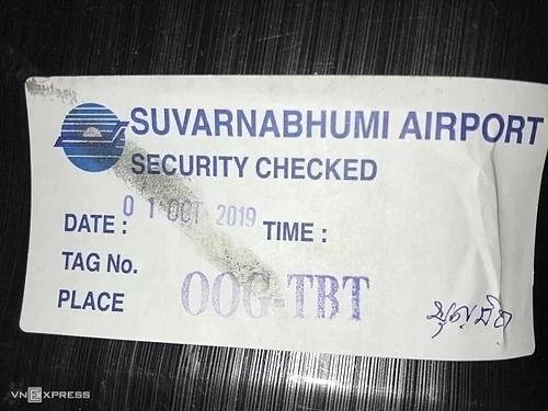 Tôi vừa đi du lịch và transit tại sân bay Suvarnabhumi trước khi về Hà Nội. Khi lấy hành lý tại Nội Bài, tôi phát hiện vali của mình bị mở khóa, bên ngoài có dán thẻ xác nhận của đội ngũ an ninh sân bay Suvarnabhumi, Thái Lan.