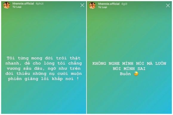 Mới đây nhất trên instagram cá nhân, H'Hen Niê khiến dư luận vô cùng hoang mang khi liên tục có những dòng trạng thái đầy tâm trạng. Được biết thời gian này, nàng Hậu đang có chuyến nghỉ dưỡng tại quê nhà sau những ngày làm việc mệt mỏi. Chính vì thế khi những dòng trạng thái này xuất hiện, cộng đồng mạng hoang mang không biết lý do vì sao một người luôn tràn đầy năng lượng như H'Hen Niê lại có nhiều suy nghĩ như thế.