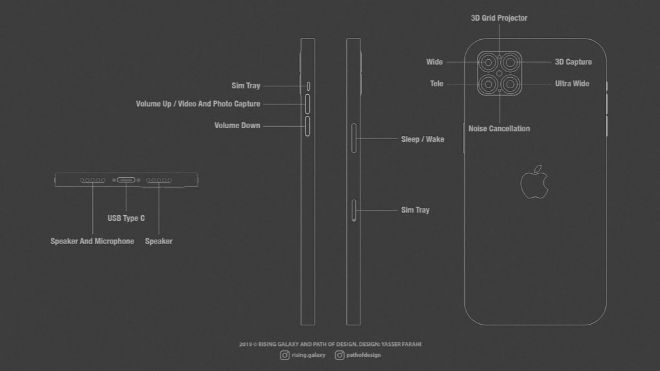 Được tạo bởi Yasser Farahi, chiếc iPhone 12 Pro này được nâng cấp với 4 camera ở phía sau và cũng hỗ trợ sạc không dây ngược. Màn hình bây giờ là ProRotion Super Retina XDR và không chứa bất kỳ notch nào.