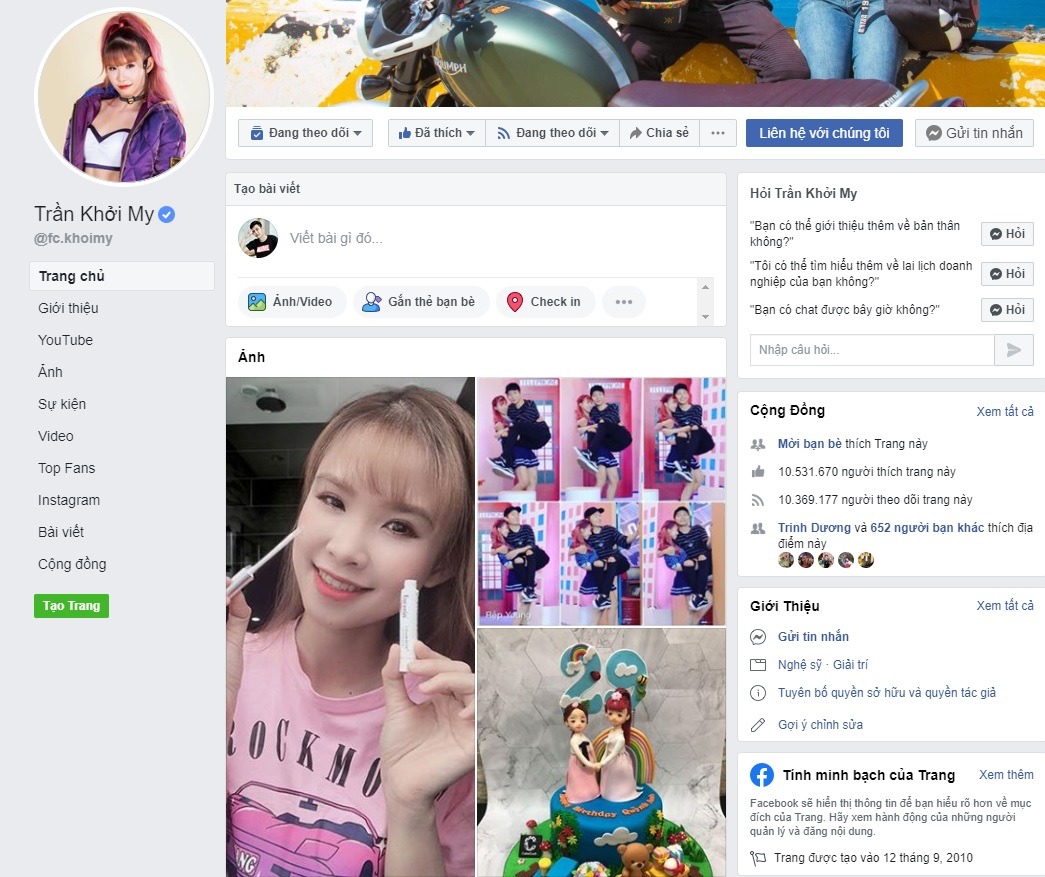 Xếp sau Khởi My là ca sĩ Sơn Tùng MTP. Fanpage của anh có 10.334.790 lượt thích. Trên trang cá nhân, nam ca sĩ thường xuyên đăng tải hình ảnh biểu diễn và các sản phẩm âm nhạc thu hút hàng trăm nghìn lượt like, hàng nghìn bình luận.