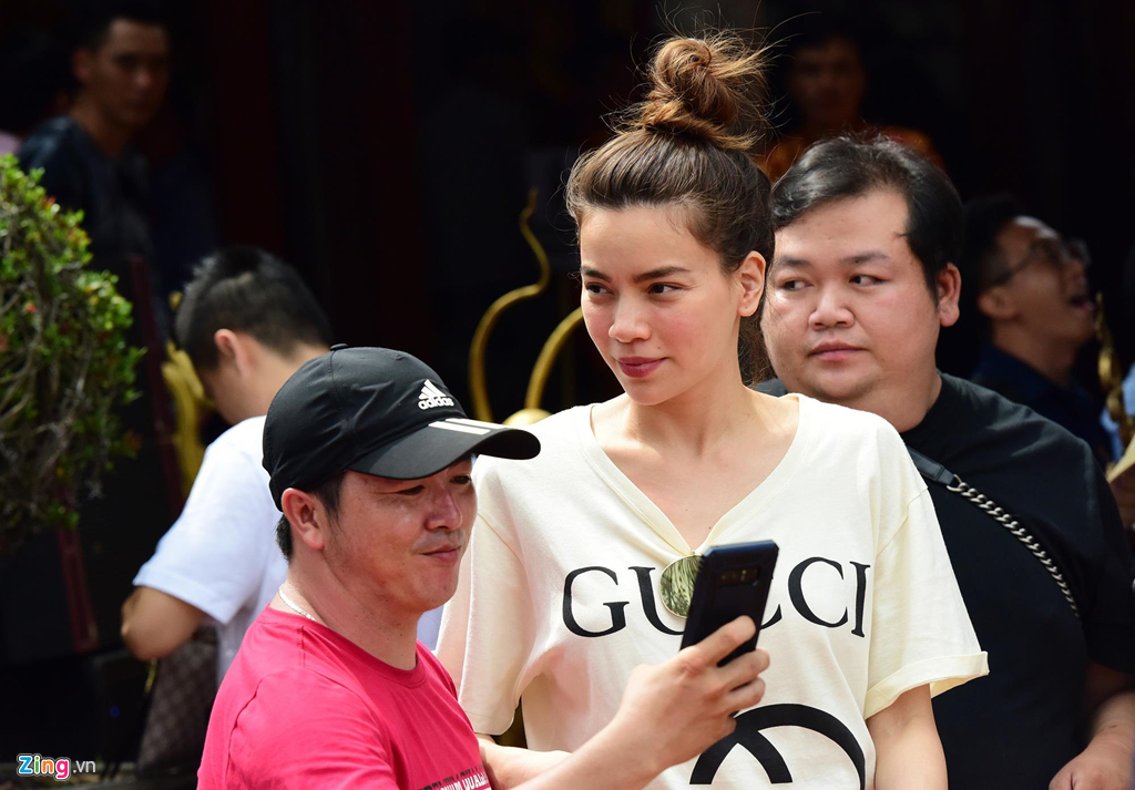 Khoảng 13h, ca sĩ Hồ Ngọc Hà có mặt tại nhà thờ Tổ của nghệ sĩ Hoài Linh. Giọng ca Love Songs diện bộ đồ trắng. Cô trang điểm tự nhiên, tóc búi cao, đi dép bệt giản dị.