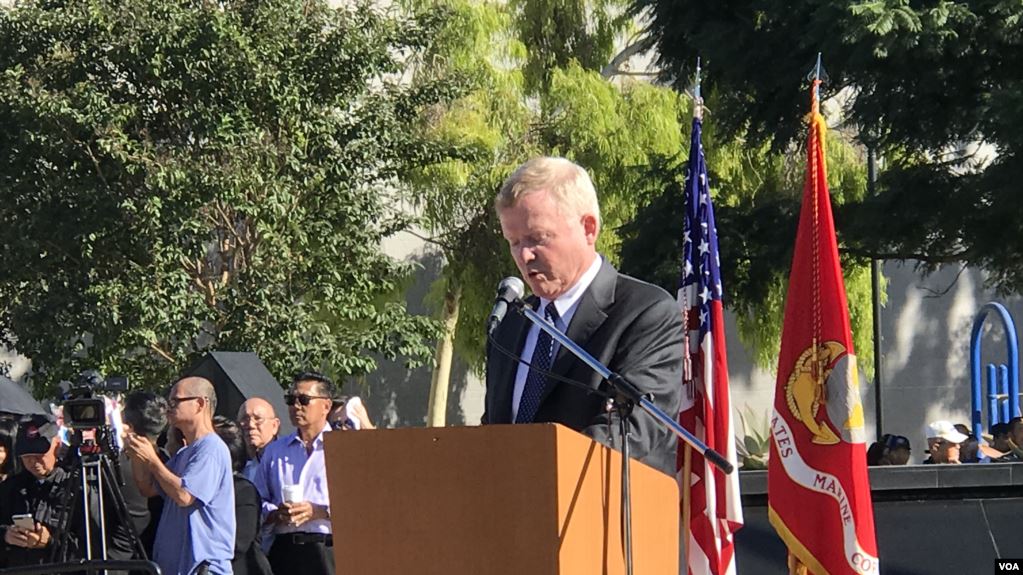 Bộ trưởng Hải quân Richard Spencer phát biểu tại lễ tưởng niệm 81 chiến sĩ VNCH ngày 26/10/2019 tại Westminster, California.