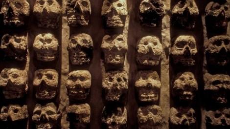 Một khối đầu sọ 35m nơi người Mexica trưng bày xương sọ từ các nạn nhân hiến tế của họ bên ngoài đền Templo Mayo ở Thành phố Mexico City.