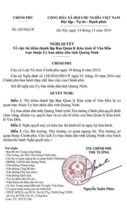 Hôm nay trên mạng xuất hiện bản Nghị Quyết thành lập ban quản lý đặc khu kinh tế Vân Đồn, điều đó cho thấy ĐCS Việt Nam xem ý dân không ra gì cả. Hay nói đúng hơn họ đã phản bội ý dân một cách trắng trợn và làm vừa lòng Trung Cộng một cách công khai, trong khi đó, Trung Cộng mới vừa kéo quân đến xâm chiếm lãnh hải Việt Nam suốt 3 tháng. Câu hỏi đặt ra là, tại sao ông Nguyễn Xuân Phúc ký bản Nghị Quyết này? Sự thật đằng sau bản Nghị Quyết này là gì, ĐCS Việt Nam ký bản nghị quyết này để phục vụ lợi ích gì của đảng? Để trả lời câu hỏi, chúng ta cần phải xâu chuỗi những sự kiện thì sự thật sẽ hiện ra thôi.
