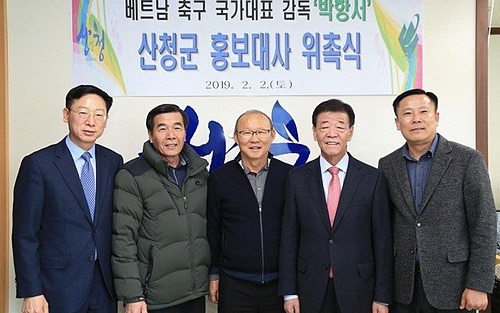 Theo Yonhap, HLV Park Hang-seo, 60 tuổi, đã trở thành "người hùng" tại Việt Nam và Hàn Quốc sau những thành tựu khi dẫn dắt đội tuyển quốc gia, U23 Việt Nam từ tháng 10/2017. Mối quan tâm của người Việt Nam đối với Hàn Quốc đã tăng lên nhờ những màn trình diễn ấn tượng của HLV Park và các học trò. Từ tháng 4 đến tháng 11 năm nay có hơn 20 nhóm khách du lịch Việt đã đến thăm Sancheong.