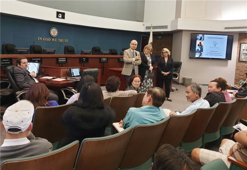 Tại phòng họp Hội Đồng Thành Phố Westminster, do Dân Biểu Tyler Diệp, người gốc Việt duy nhất tại Quốc Hội tiểu bang California, tổ chức, khiến có rất đông nhiều người thuộc ngành nail tham dự buổi hội thảo về đạo luật AB5 này.