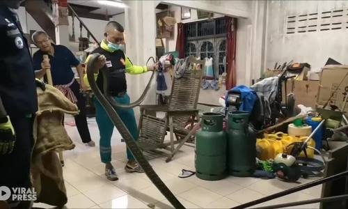 Suthichart Kamburi, sống tại Mueang Trang, Thái Lan, bắt gặp hổ mang chúa khi đang chuẩn bị nấu cơm tối hôm 8/12. Ban đầu cô không biết đây là loài rắn gì mà chỉ thấy nó rất lớn. "Tôi sợ hãi khi thấy con rắn dưới bồn rửa và chạy ra ngoài nhanh nhất có thể. Sau đó, tôi bình tĩnh lại và nghĩ ra mình cần làm gì tiếp theo. Tôi gọi cho đội cứu hộ nhờ trợ giúp", Suthichart nói.