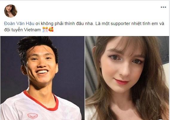Alexandra Rud viết: "Cám ơn em Đoàn Văn Hậu đã mang hạnh phúc đến cho hàng triệu người Việt Nam và cả không phải người Việt Nam như mình” kèm biểu tượng ba trái tim.