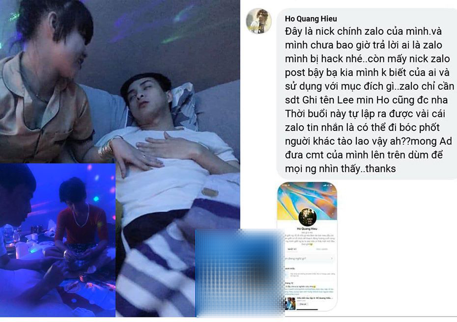 Ngày 12/12, Hồ Quang Hiếu cho hay tài khoản mang tên Hồ Quang Hiếu trong bức ảnh mà cô gái T.X cập nhật không phải là của mình: “Đây là nick chính zalo của mình và mình chưa bao giờ trả lời ai là zalo mình bị hack nhé. Còn mấy nick zalo post bậy bạ kia, mình không biết của ai và sử dụng với mục đích gì? Zalo chỉ cần số điện thoại ghi tên Lee Min Ho cũng được nha. Thời buổi này tự lập ra được vài cái zalo tin nhắn là có thể đi bóc phốt người khác tào lao vậy à?”.