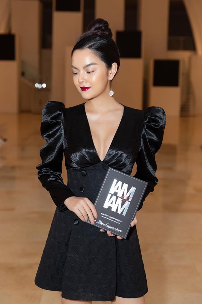 Một bộ váy đen tưởng chừng sẽ khiến mỹ nhân họ Phạm trở nên kém nổi bật và trông "dừ" hơn lại hoàn toàn mang đến cho cô một vẻ ngoài sang chảnh và đẳng cấp ngời ngời nhờ vào kiểu dáng tay phồng của thiết kế cũng như đường xẻ cổ V gợi cảm.
