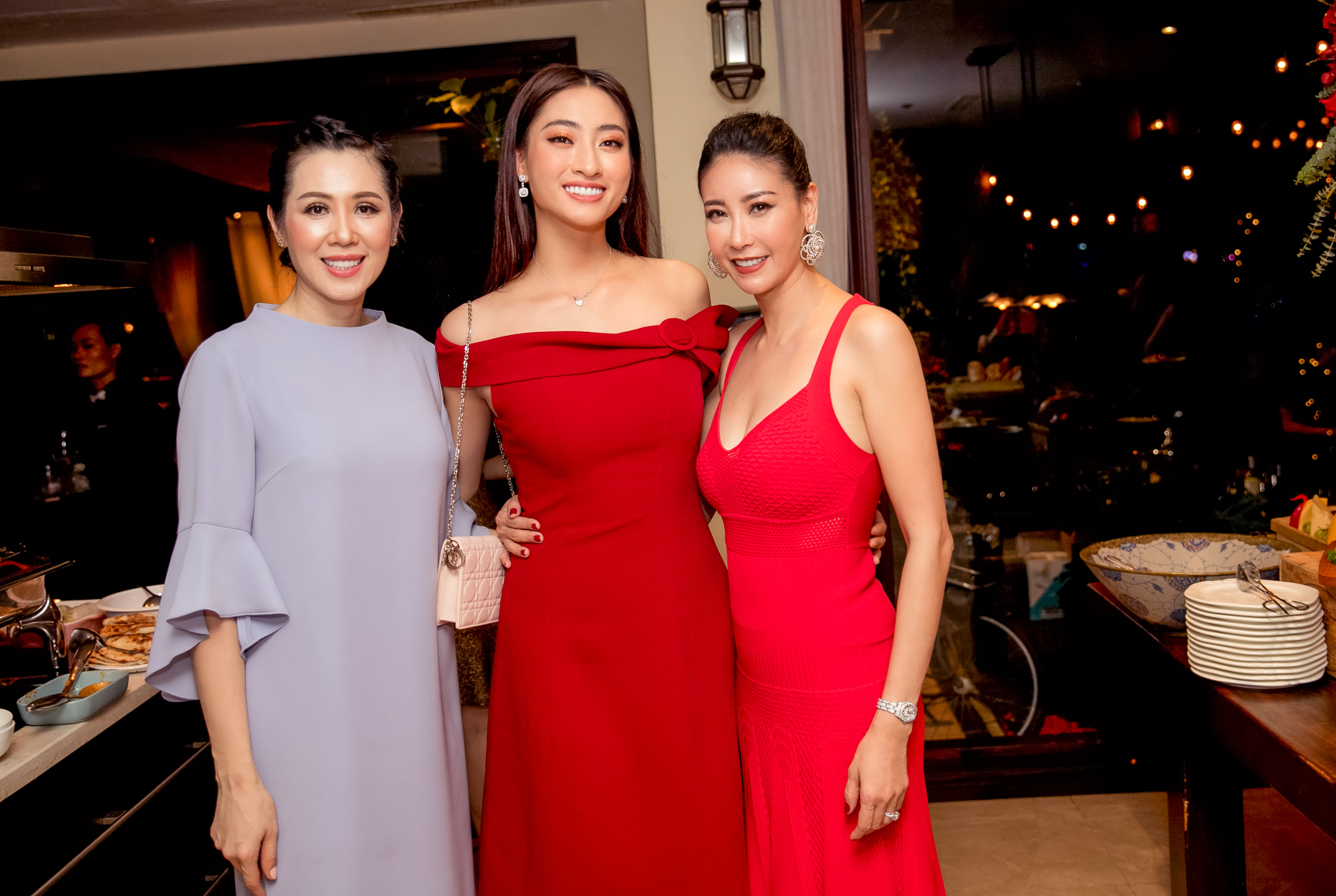 Đến chung vui cùng hoa hậu là những gương mặt rất nổi tiếng và quen thuộc của giới doanh nhân cũng như showbiz Việt. Buổi tiệc có sự hiện diện của doanh nhân Thuỷ Tiên, doanh nhân Thuỳ Dương, nhà sản xuất Trương Ngọc Ánh, người em thân thiết nghệ sỹ múa Linh Nga, cựu siêu mẫu Vũ Thu Phương, Tân hoa hậu Lương Thuỳ Linh, ca sĩ Quốc Thiên, gia đình đạo diễn Nguyễn Nam - Lê Hạnh, cùng những người bạn là đạo diễn Nguyễn Ngọc Thuỵ, Phúng Nguyễn...