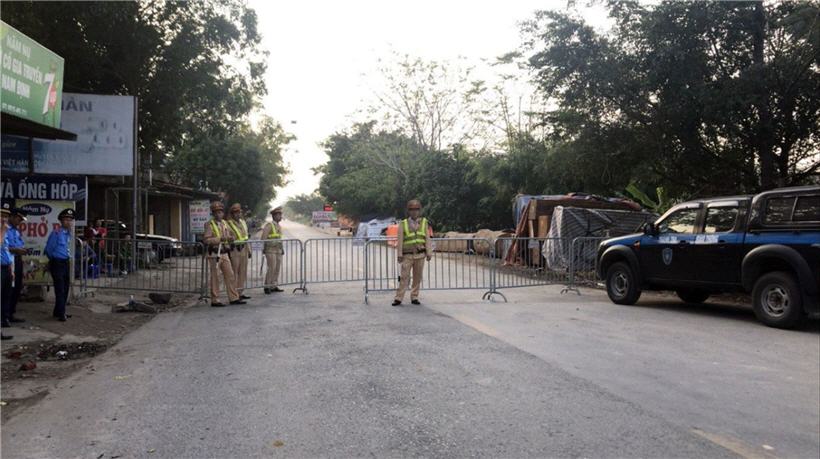 Công an lập chốt chặn ra vào xã Đồng Tâm. (Hình: Duy Anh/****)