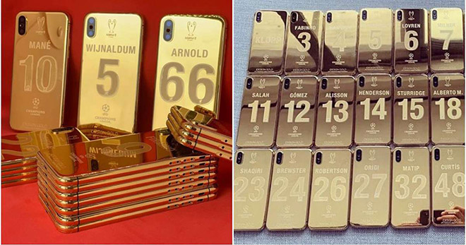 Cụ thể, mỗi người được tặng một chiếc iPhone X mạ vàng 24K với giá trị gần 3.500 bảng Anh (khoảng 105 triệu đồng). Mỗi chiếc điện thoại được thiết kế giống áo đấu của mỗi cầu thủ với tên tương ứng, cùng logo C1 tại Madrid và biểu tượng Champion League cùng với nhà thiết kế iDesign Gold.