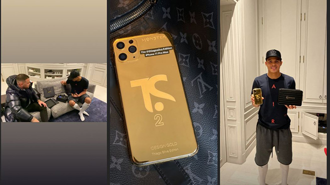Trung vệ người Brazil đang thi đấu cho câu lạc bộ Paris Saint-Germain (Pháp), Thiago Silva, cũng sở hữu một chiếc điện thoại mạ vàng 24K do iDesign Gold tạo ra, nhưng mới và hiện đại hơn là iPhone 11 Pro Max.