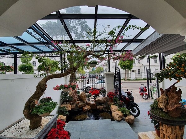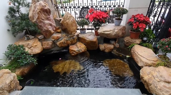 Ъ¡ệт thự của Tuấn Hưng có sân rộng để bày tiểu cảnh với cây cối, hồ cá, bonsai. Vừa bước vào cổng nhà là cả 1 không gian vừa thiên nhiên, vừa sang trọng. Tuấn Hưng còn cẩn thận làm bể cá 2 tầng đáy cho đỡ nguy hiểm với trẻ con.