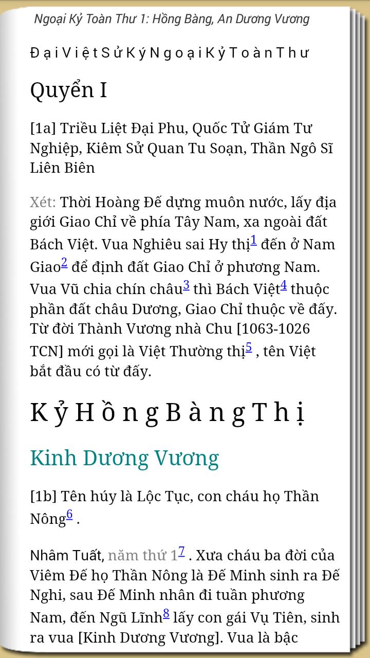 Sử thần Ngô Sĩ Liên nói: Khi trời đất mới mở mang, có thứ do khí hóa ra, đó là Bàn Cổ thị. Có khí hóa ra rồi sau có hình hóa, không thứ gì ngoài hai khí âm dương cả. Kinh Dịch nói: "Trời đất nung ủ, vạn vật thuần hóa, đực cái hợp tinh, vạn vật hóa sinh"7 . Cho nên có vợ chồng rồi sau mới có cha con, có cha con rồi sau mới có vua tôi. [2b] Nhưng thánh hiền sinh ra, tất có khác thường, đó là do mệnh trời. Nuốt trứng chim huyền điểu mà sinh ra nhà Thương8 , giẫm vết chân người khổng lồ mà dấy nhà Chu12, đều là ghi sự thực như thế. Con cháu Thần Nông thị là Đế Minh lấy con gái Vụ Tiên mà sinh Kinh Dương Vương, tức là thủy tổ của Bách Việt. Vương lấy con gái Thần Long sinh ra Lạc Long Quân, Lạc Long Quân lấy con gái Đế Lai mà có phúc lành sinh con trai. Đó chẳng phải là cái đã gây nên cơ nghiệp của nước Việt ta hay sao? Xét sách Thông Giám Ngoại kỷ (4)9 nói: Đế Lai là con Đế Nghi; cứ theo sự ghi chép ấy thì Kinh Dương Vương là em ruột Đế Nghi, thế mà kết hôn với nhau, có lẽ vì đời ấy còn hoang sơ, lễ nhạc chưa đặt mà như thế chăng?