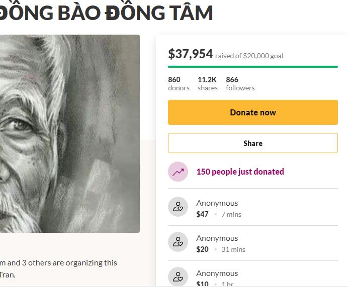 Tuy thế, sau khoảng 15 phút, tôi kiểm tra đường link vào quỹ Go Fund Me (GFM) và sửng sốt thấy số tiền hỗ trợ đã là 320 USD. Kể từ đó, gần như cứ mỗi 10 phút, số tiền người Việt ở khắp nơi trên thế giới gửi về hỗ trợ đồng bào Đồng Tâm qua GFM lại tăng thêm khoảng 100 USD. Ban đầu, phần lớn tiền đến từ người Việt trong nước, với những khoản nhỏ, chỉ 5 đến 10 USD.