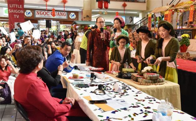 Đài truyền hình Little Saigon TV phối hợp cùng thương xá Phước Lộc Thọ tổ chức cuộc thi nấu gói bánh chưng, bày mâm ngũ quả và thi áo dài Việt Nam truyền thống, đã thu hút đông đảo đồng hương đến tham dự.