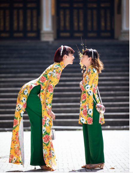 Con gái Hoa hậu Ngọc Diễm lớn phổng phao, diện áo dài đón Tết cùng mẹ, Chiko vừa diện áo dài đôi, chụp ảnh đón Xuân cùng mẹ.