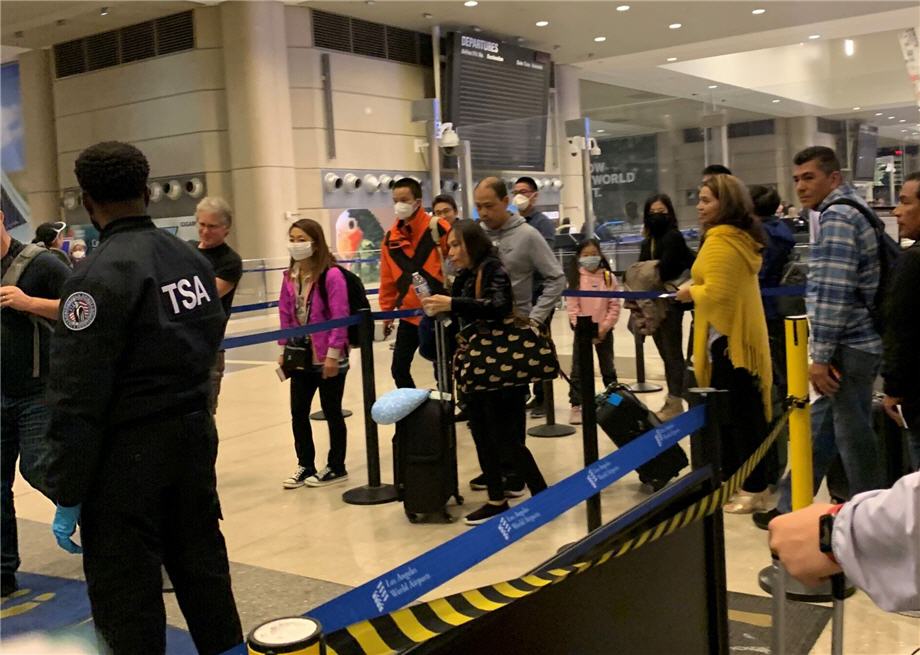 Tại phi trường Los Angeles, ngày 1 Tháng Hai, rất ít khách Mỹ và Hispanic đeo khẩu trang. (Hình: Cường Lê)
