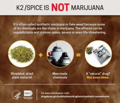 Cần sa nhân tạo (synthetic cannabinoid) được mô tả là sản phẩm được xịt hóa chất có tác dụng tạo ảo giác như chất THC được tìm thấy trong cần sa nguyên chất. Cần sa nhân tạo được bán qua những nhãn hiệu như K2 và Spice. Lẽ đương nhiên những thứ này không ghi rõ là cần sa bên ngoài bao bì, mà chỉ được quảng cáo là chất tạo mùi thơm hoặc nhang trầm.