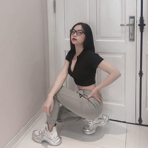 Cô nàng lăng xê phong cách cực trẻ trung, nghịch ngợm với set đồ bao gồm toàn những món cơ bản như áo thun, quần thun và giày.