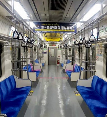 Tàu điện ngầm lúc 7 giờ tối 22/2 từ thành phố Gyeongsan lên Daegu và ngược lại vắng tanh. Ảnh: Vũ Vinh.