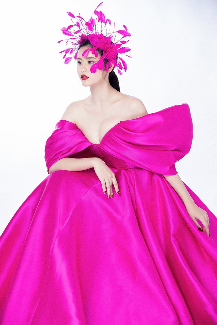 Bộ váy hồng Trương Quỳnh Anh mặc do NTK Lê Thanh Hòa thực hiện làm nổi bật vẻ đẹp hút mọi ánh nhìn của bà mẹ một con.