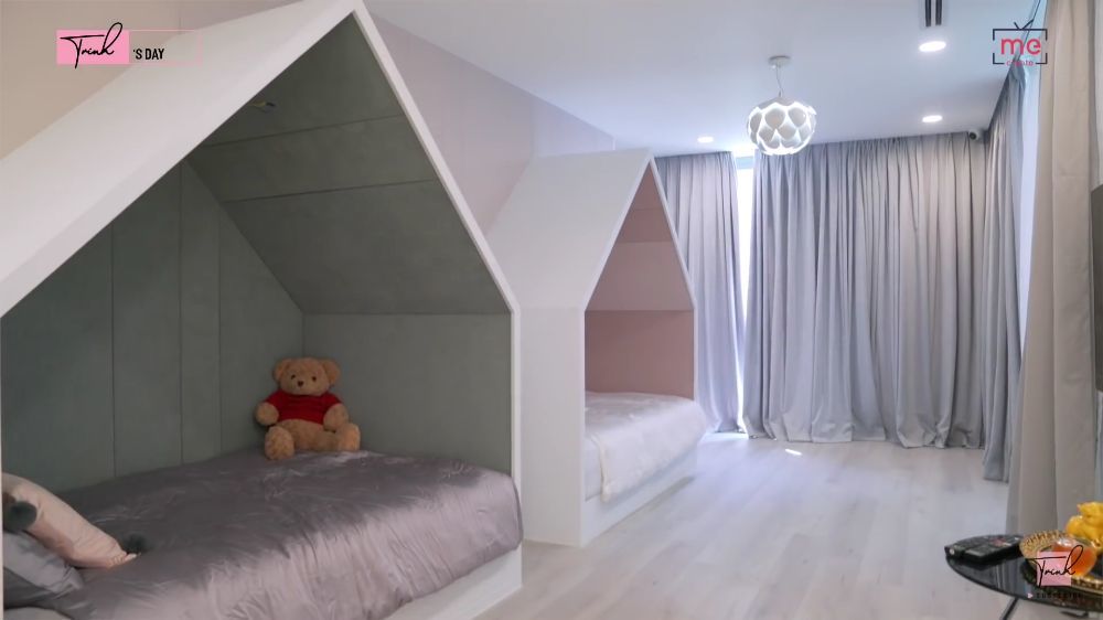 Ở tầng 1, Ngọc Trinh có dành một phòng cho hai đứa con của mình. Mặc dù chưa kết hôn, nhưng cô đã dự định sau này sẽ sinh một bé trai và một bé gái nên chân dài đã quyết định chuẩn bị trước.