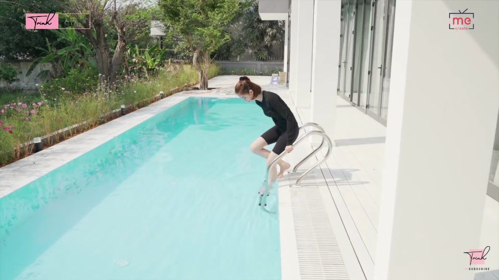 Căn biệt thự nhà Ngọc Trinh chắc chắn cũng sẽ không thiếu hồ bơi, đây cũng là nơi mà cả nhà cùng nhau thư giãn và vui đùa.